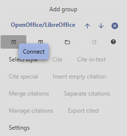 Click on the Connect button. This will automatically connect your library to the open LibreOffice document. You will get an error if no document is open and will be asked to select if more than one document is open.