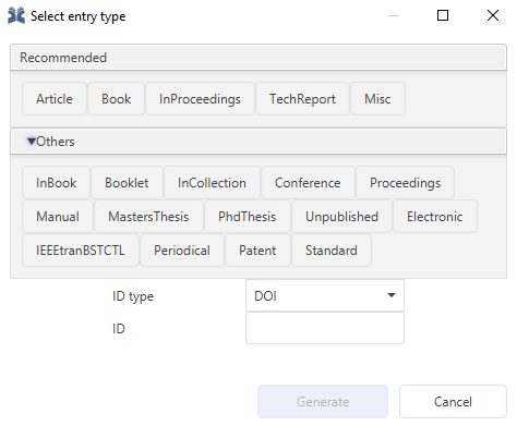 This will open a dialogue which lets you choose the reference entry type.